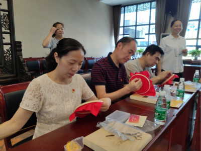 全體共繡黨旗環(huán)節(jié)在在大會議室舉行。先是奏唱莊嚴肅穆的國歌,接著黨員們一起重溫入黨誓詞,一句句錚錚誓言既是大家對黨和人民的承諾,也是對共產(chǎn)主義信仰的執(zhí)著追求。一針一線尋初心,共繡黨旗念黨恩,全體黨員一同憶初心、繡黨旗,在各自領(lǐng)的小黨旗上用黃線繡出了的黨徽。大家在剛拿到的時候,都不知道該如何動手,如何下針,在指導(dǎo)老師現(xiàn)場的悉心指導(dǎo)下,大家相互幫助,互相學(xué)習(xí),很快找到了門道。包括男同志都積極的參與,黨員們穿針引線繡得格外認真,把對黨的滿腔熱愛凝結(jié)在這細密的針線里,金黃的鐮刀斧頭襯得黨旗明朗鮮艷。一邊繡,一邊想那過去的崢嶸歲月,先烈們的英雄事跡,深感我們現(xiàn)在幸福生活的來之不易,把對黨和祖國的深情愛意繡在這一針一線里。