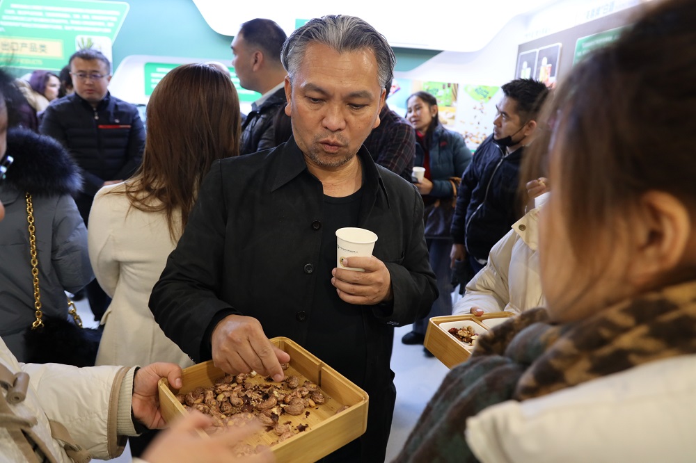 此次泰國企業(yè)代表團(tuán)由多位企業(yè)代表組成,實(shí)地參觀了公司企業(yè)展示中心,深入了解公司的發(fā)展歷程、品牌建設(shè)、產(chǎn)品等情況,并在現(xiàn)場(chǎng)品嘗了我司“節(jié)節(jié)高”牌每日?qǐng)?jiān)果、風(fēng)味腰果等產(chǎn)品,深受代表團(tuán)喜愛。在參觀現(xiàn)場(chǎng),雙方就泰國榴蓮、芒果、“節(jié)節(jié)高”牌堅(jiān)果等產(chǎn)品進(jìn)行深入了解洽談。